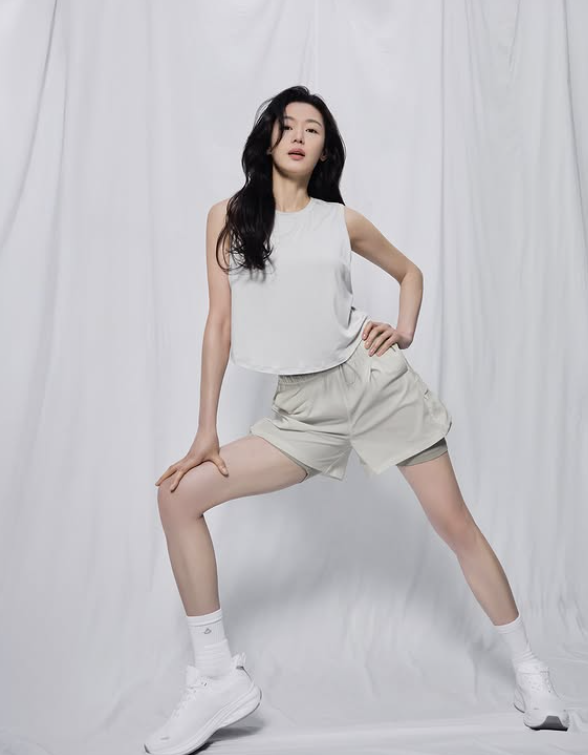 K-애슬레저 브랜드 안다르의 뮤즈로 활약 중인 전지현이 최근 공개한 25SS 화보가 화제를 모았다.