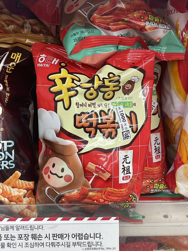 한국 대표 떡볶이 양념 맛을 봉지 과자로 풀어낸 제품으로, 매콤하고 달콤한 고추장 베이스 양념이 핵심이에요.