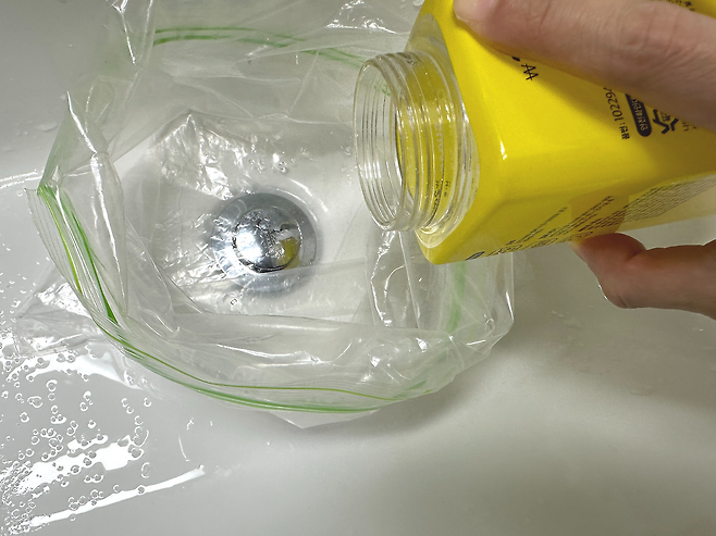 준비해 둔 지퍼백에 과탄산 소다를 충분히 뿌려주세요.
