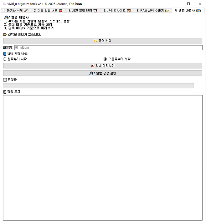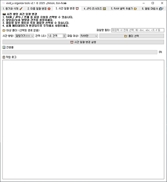 추가 된 기능은 촬영시간 수정 기능과 셀렉파일 추출기 폴더