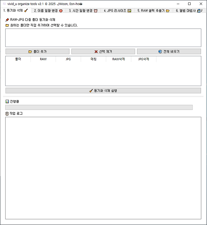 다중 폴더 작업이 가능 합니다. 폴더내 RAW파일과 JPG 파일이 함께 있거나