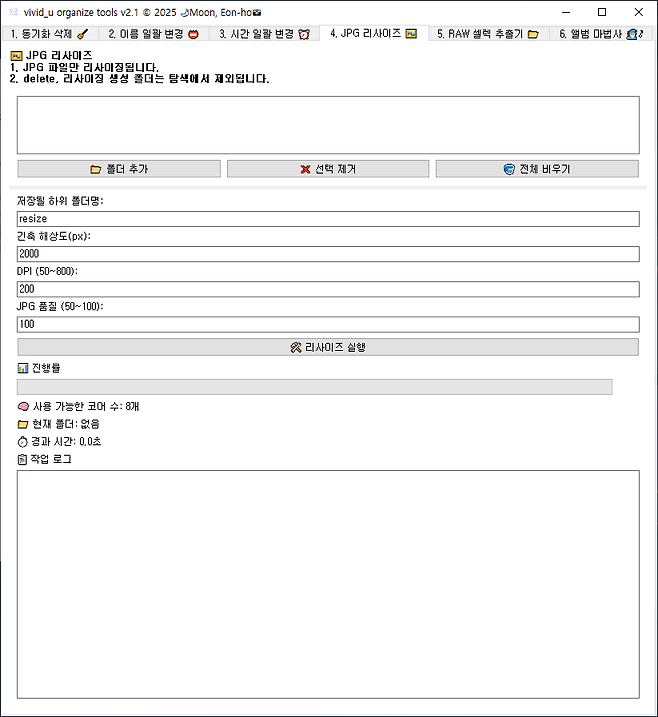 다중 폴더 작업시 먼저 선택 한 폴더 순으로 리사이징을 시작합니다.