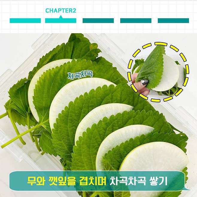 무 20조각 깻잎 20장, 청양고추(선택)