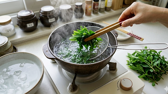 맛을 살리는 핵심, 30초 데치기