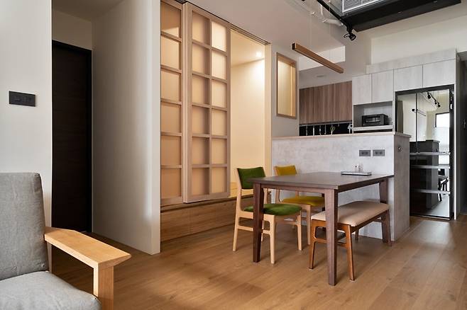 은은한 조명, 미닫이문, 낮은 단차…