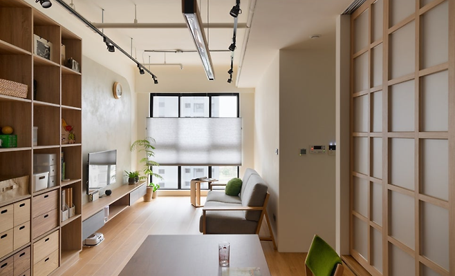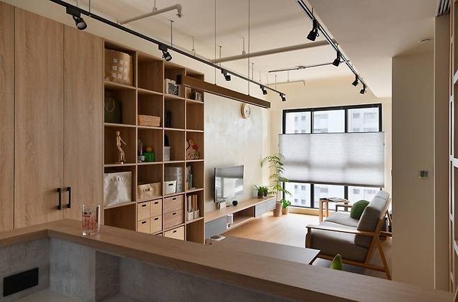 ✦ 04. 따뜻한 우드와 레일등이 만드는 18평 아파트 일본 미니멀 거실인테리어
