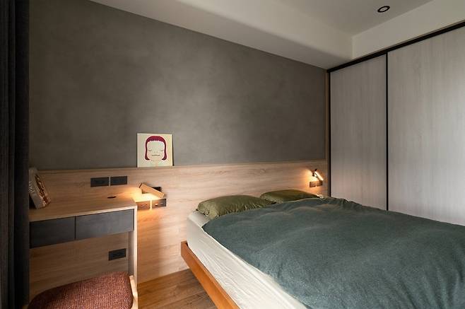 침실은 거실보다 조금 더 묵직한 톤으로 꾸며졌어요.