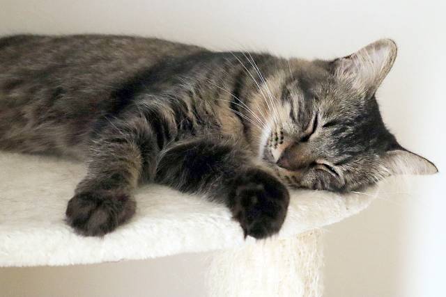 옆으로 누워 다리를 교차하고 자는 고양이들은 잠자기 좋은 자세를 찾다가 우연히 이 자세를 터득했을 것입니다.