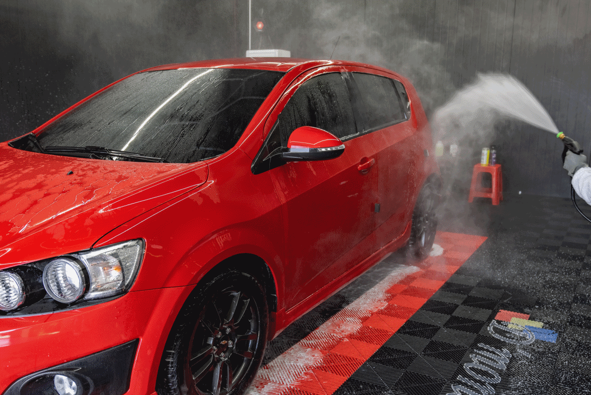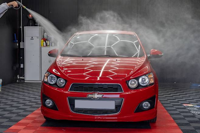 그러나 이렇게 고압수를 뿌리게 되면 세차장 바닥에 있는 오염물질이 도장면에 달라붙을 수 있다. 따라서 구역을 나눠 조금 더 효율적으로 고압수를 분사하는 게 좋다.