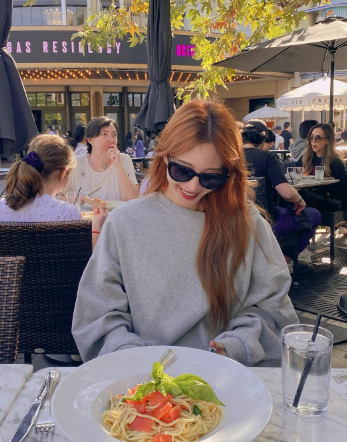 탤런트 한예슬은 편안해보이는 회색 맨투맨에 선글라스를 매치해주었어요!