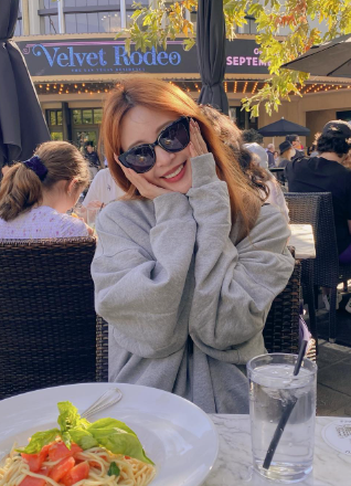 탤런트 한예슬은 편안해보이는 회색 맨투맨에 선글라스를 매치해주었어요!