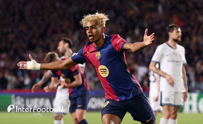 야말의 놀라운 플레이가 연달아 나왔다. 전반 26분 다시 한번 인터 밀란 수비진을 흔든 야말이 문전 우측에서 강력한 슈팅을 시도했다. 야말의 슈팅은 좀머의 손을 스쳐 골대를 맞고 무산됐다.