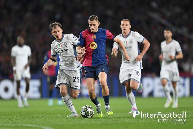 인테르가 변화를 줬다. 후반 35분 득점을 기록한 둠프리스, 튀람을 제외하고 마테오 다르미안, 피오트르 지엘린스키를 투입했다. 바르셀로나도 체력 안배를 택했다. 후반 38분 쿠바르시, 페드리를 빼고 안드레아스 크리스텐센, 가비를 넣었다.