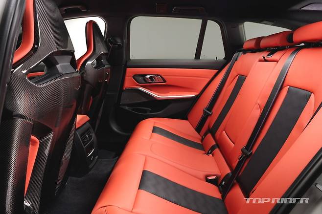 센터콘솔 셋업 버튼으로 엔진과 섀시, 스티어링, 브레이크 시스템 설정을 개별적으로 조정이 가능하다. 트랙모드가 적용됐다. M3 투어링에는 12.3인치 디지털 계기판과 14.9인치 디스플레이로 구성된 BMW 커브드 디스플레이, M 스포츠 시트, 헤드업 디스플레이가 탑재됐다.