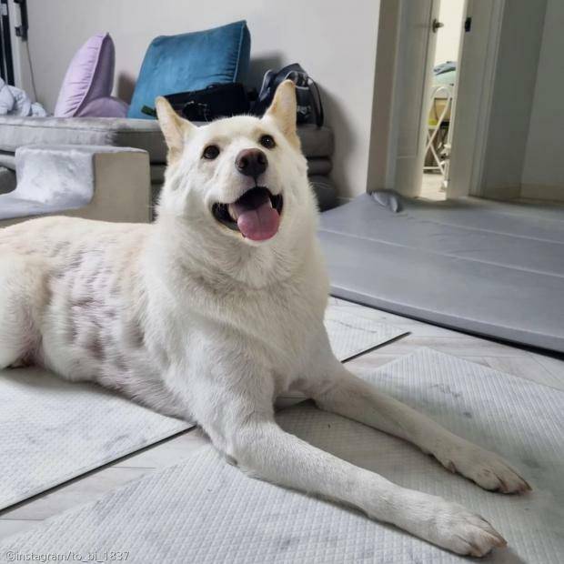 이제 곧 2살이 되는 토비는 풍산개와 진돗개 사이에서 태어난 믹스견이다.
