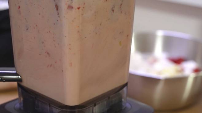 배, 사과, 양파 반 개, 붉은 고추 5개, 파프리카, 무를 넣고 간 후 고운체에 받쳐 즙을 내주세요. 이때 파프리카가 들어가면 국물이 더욱 맛있고 색깔도 더욱 좋아진답니다. 천연의 단맛을 내주는 배가 들어가 더욱 맛있어요!