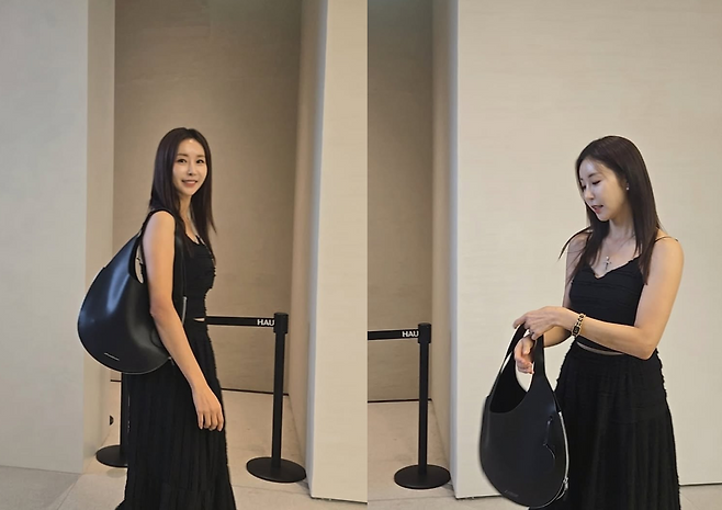 부드러운 조명이 비추는 실내, 배우 한다감은 올 블랙 스타일로 우아함을 드러냈다.