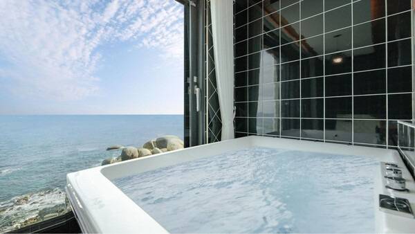 강릉 더씨엘 스파펜션은 사천 해수욕장 바로 앞에 위치해 있는데요. 전 객실이 오션뷰이며, 바다를 향해 설치된 스파욕조에서 오션뷰를 감상하며 펜캉스를 즐기실 수 있습니다.