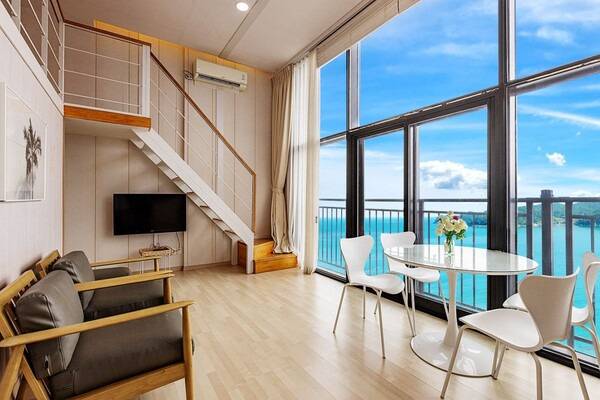 소르르 펜션도 앞서 소개해드린 베르나차 펜션과 같이 오션뷰 복층 펜션인데요. 층고가 높고 바다 쪽으로는 통창으로 되어있어 더욱 감성 있는 힐링이 가능한 특별한 숙소입니다.