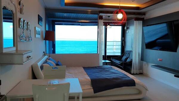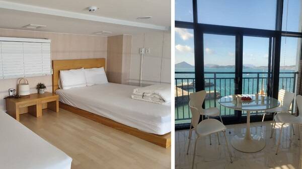 창을 열게 되면 파도소리가 매우 가까이 들릴 정도로 감성 있는 힐링이 가능한데요. 또한 문을 닫으면 적막함만 맴돌정도로 방음이 매우 철저해 연인과 함께 방문해도 손색없는 숙소입니다.