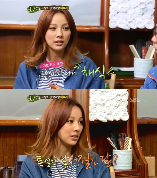 아무래도 이발소 수익으로는 빠듯한 삶을 살 수밖에 없었던 가족들. 지금이야 자발적으로 채식을 하고 있는 이효리이지만 당시에는 타의적으로 반 강제적인 채식을 할 수밖에 없었고, 고기라곤 두 달에 한 번 먹는 폐닭이 전부였다고.
