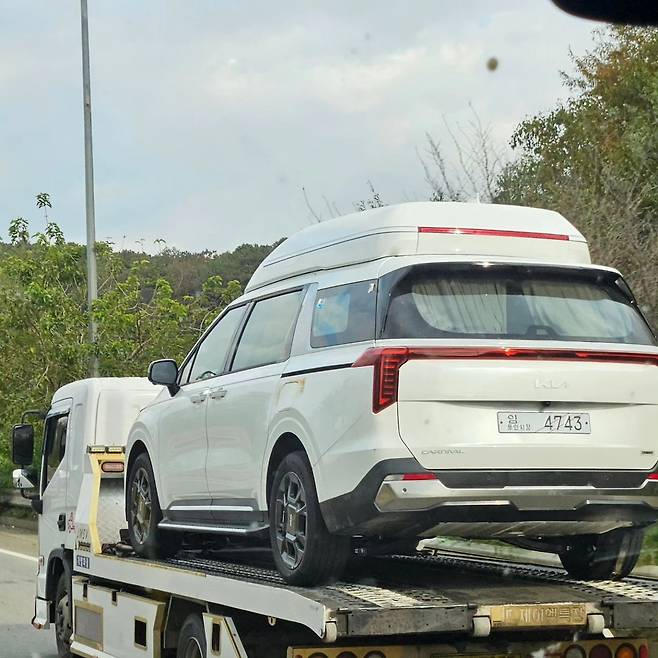 X (구 트위터) 아이디 ‘잇츠 브리지 워미셔렙(itsbridgewormishereb)’은 5일 국내 한 도로에서 자동차 운반차에 실린 카니발 F/L 하이리무진 사진 2장을 공개했다.