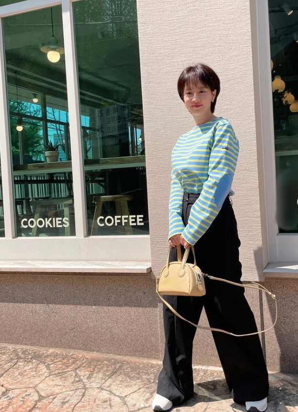 이외에도 송지효는 일상에서 상큼하고 발랄한 느낌이 나는 캐주얼룩을 자주 선보이고 있어요.