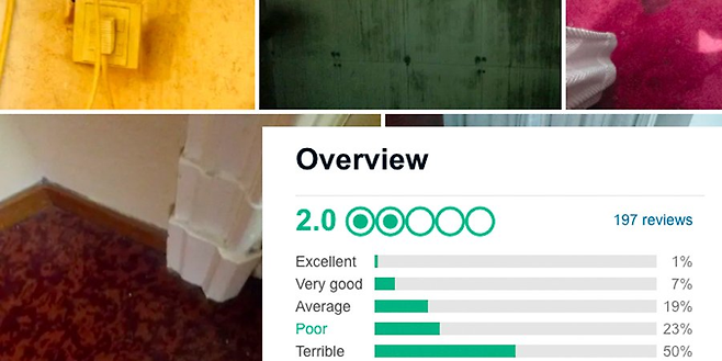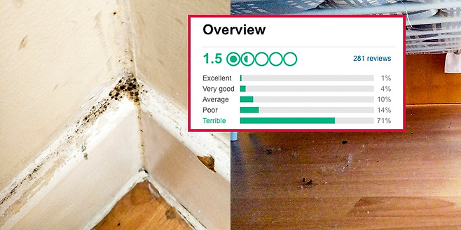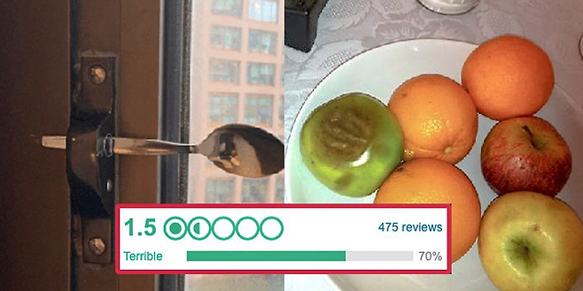 머천트 호텔은 투숙객들로부터 475개의 리뷰를 받았으며, 그 중 292개가 최악의 점수를 매겼습니다. "고장난 침대와 불결한 화장실", "썩은 웰컴 후룻" 등 투숙객들의 불만이 이어졌지요. 투숙객들이 공유한 사진에서는 창문이 고장 나 수저로 고정해 둔 모습까지 포착되었습니다. 그야말로 비위생적이라는 평가를 받기에 부족함이 없었죠.