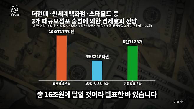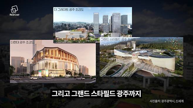 하지만 지금 광주는 천지개벽을 앞두고 있습니다. 대한민국 유통 시장을 양분하는 현대백화점과 신세계가 모여 광주에 초대형 복합쇼핑몰 '빅3'를 동시에 건설 및 추진 중입니다.