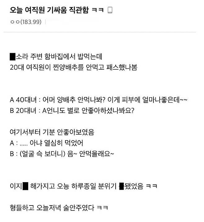 숨 막히는 여자들의 기 싸움을 직관한 남자