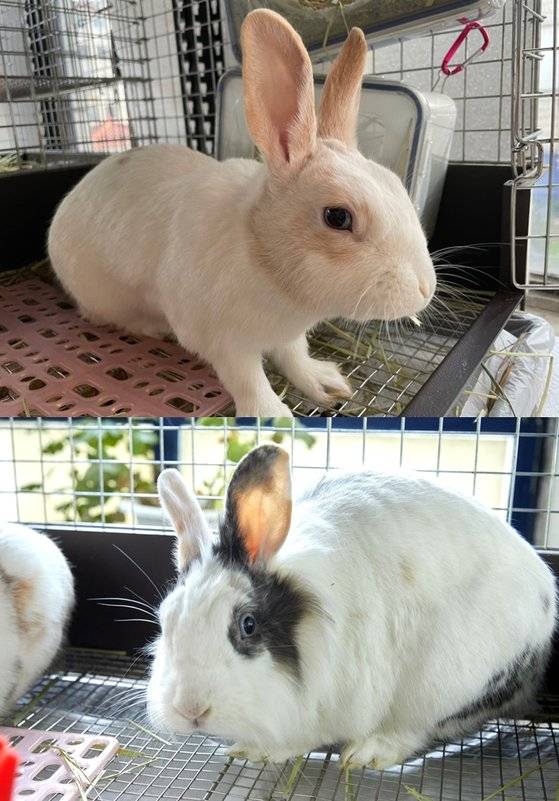 구찌(왼쪽)와 디올은 2022년 서울의 한 초등학교 토끼 집단 유기 사건 때 군포 수리산에 버려졌다가 시민들에 의해 구조돼 시 보호소로 옮겨졌어요. 당시 유기돼 입은 상처에 파리가 꼬여 등·엉덩이 부분에 구더기가 잔뜩 끓고 있었는데, 상처 부위가 크고 어려서 생사를 장담하기 어려웠습니다. 하지만 두 달 동안 치료를 받은 후 기적적으로 완치해서 지금은 아주 예쁘고 건강해요. 상처를 회복하느라 성장을 못 했는지 다른 토끼들보다 조금 작지만 그마저도 사랑스럽죠.