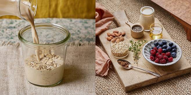 오버나이트 오트밀은 밤새 불어난 부피 때문에 포만감도 높다. 기름, 설탕 등을 넣고 가공한 그래놀라나 오트밀 제품에 비해 칼로리도 적다. 귀리에 함유된 식이섬유 덕에 변비 예방에도 도움이 되며, 영양소도 풍부하다. 오버나이트 오트밀이 다이어트 식단으로 애용되는 이유다.