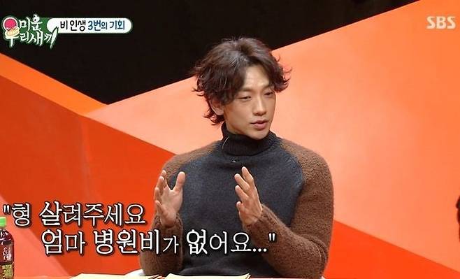비는 "다들 아실 거다. 가정사가 되게 힘들었다는 걸. 어머니 병원비가 없어서 제가 정말 여러 군데 많이 도움을 요청했는데 그 누구 하나 도와주질 않더라. 병원만 가도 연명할 수 있었고 방송에도 여러 번 언급한 건데"라며 털어놨습니다.
