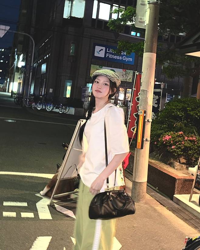 상의는 볼륨감 있는 퍼프 소매의 화이트 블라우스를 선택해 청순하면서도 유니크한 무드를 자아냈다. 봉긋하게 부풀린 소매가 상체 실루엣을 부드럽게 연출하면서도 존재감을 확실히 드러냈다. 하의로는 라이트 카키 컬러의 조거 팬츠를 매치해 편안하면서도 스타일리시한 스트릿 무드를 완성했다. 팬츠 측면을 따라 들어간 화이트 배색 디테일이 스포티한 포인트를 더했다. 여기에 청키한 화이트 스니커즈를 신어 경쾌함을 살렸다.