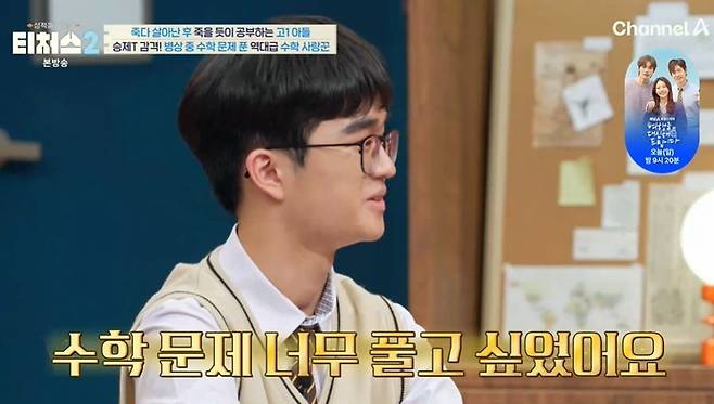 17일 방송된 채널A '성적을 부탁해: 티처스2'(이하 '티처스2')에서는 중학교 때 자퇴한 도전학생이 등장했다.