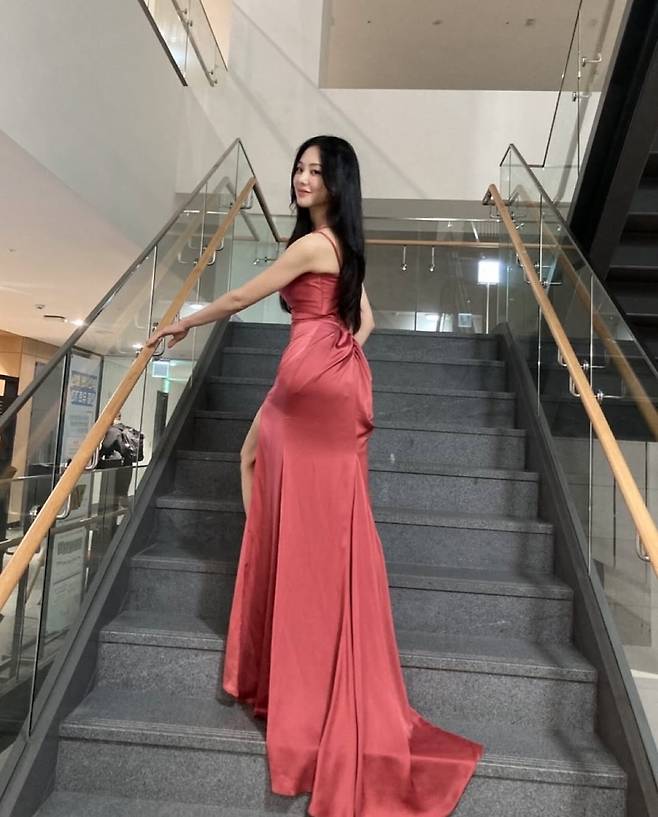 사진 속 그는 글램한 핑크 드레스를 입고, 사랑스러운 에너지와 우아한 매력을 동시에 발산하며 레드카펫을 빛냈다.