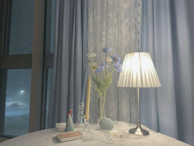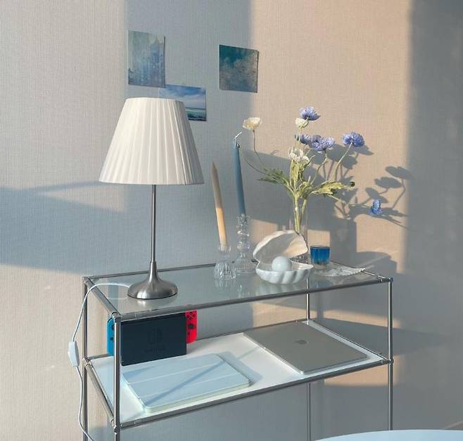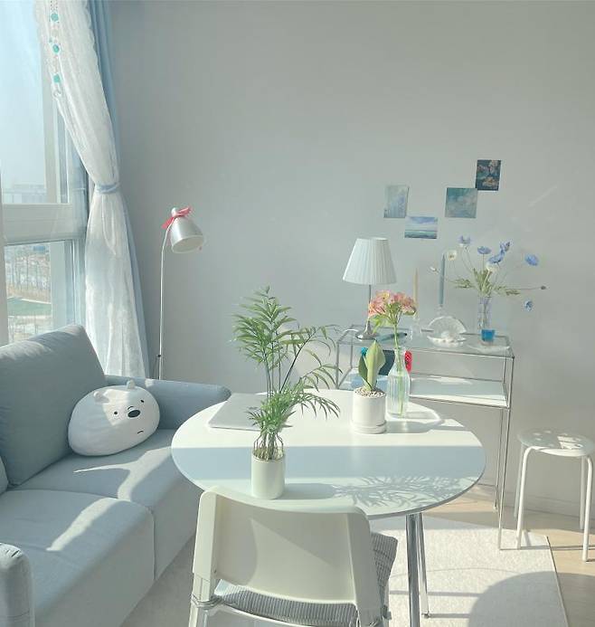 물품을 구매했어요. 곳곳에는 포인트가 될 하늘색 인테리어 소품도 놓아주었답니다.