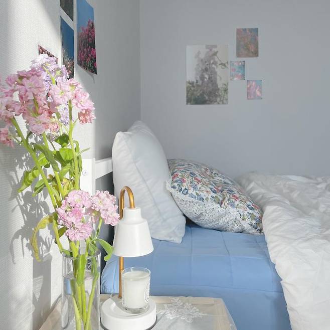 저는 꽃을 좋아해서 베개커버를 꽃이 낭랑한 베개커버로 바꿔주고,