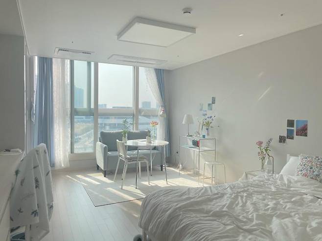 저는 방의 콘셉트 컬러는 화이트&스카이블루로 잡았어요.