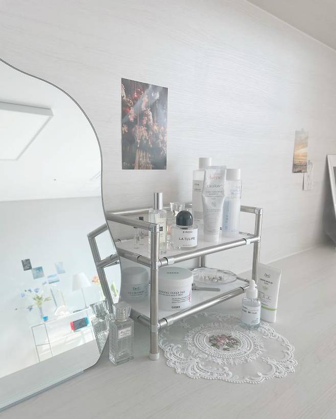 비정형 거울 너무 예쁘지 않나요? 가격이 조금 나갔지만 저의 행복을 위해 투자했습니다.