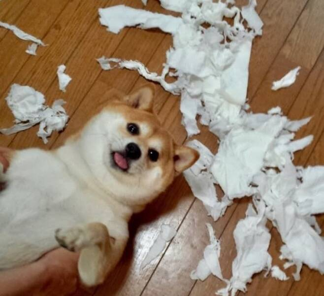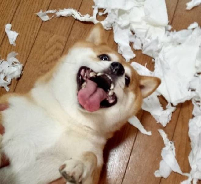 시바견을 키우고 있는 한 집사는 자신의 인스타그램 계정에 집안이 휴지로 뒤덮인 현장을 공개했습니다. 이 강아지는 온 집안을 장난감 삼아 휴지를 물어뜯고, 신나게 어질러 놓았죠. 하지만 정작 문제의 시바견은 자신이 무슨 잘못을 했는지 모르는 듯, 집사를 뚫어지게 쳐다보며 환하게 웃고 있었습니다.