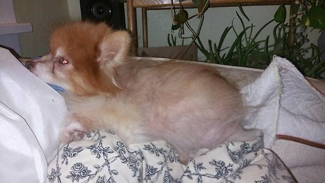 이런 증상을 알로페시아 증후군 혹은 포스트 클리핑 증후군이라고 합니다. 포메 탈모라고 부르기도 해요. 포메라니안이나 재패니즈 스피츠 같은 이중모 견종에게 종종 나타난다고 합니다. 안타깝게도 아직까지 그 원인과 치료법에 대해 정확히 밝혀진 사실이 없는 상황이에요.