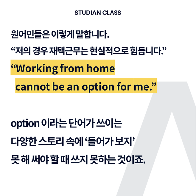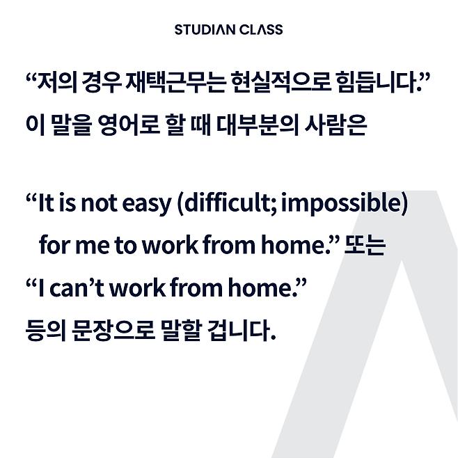 "저는 재택근무가 현실적으로 힘듭니다" 영어로 어떻게 말하지?