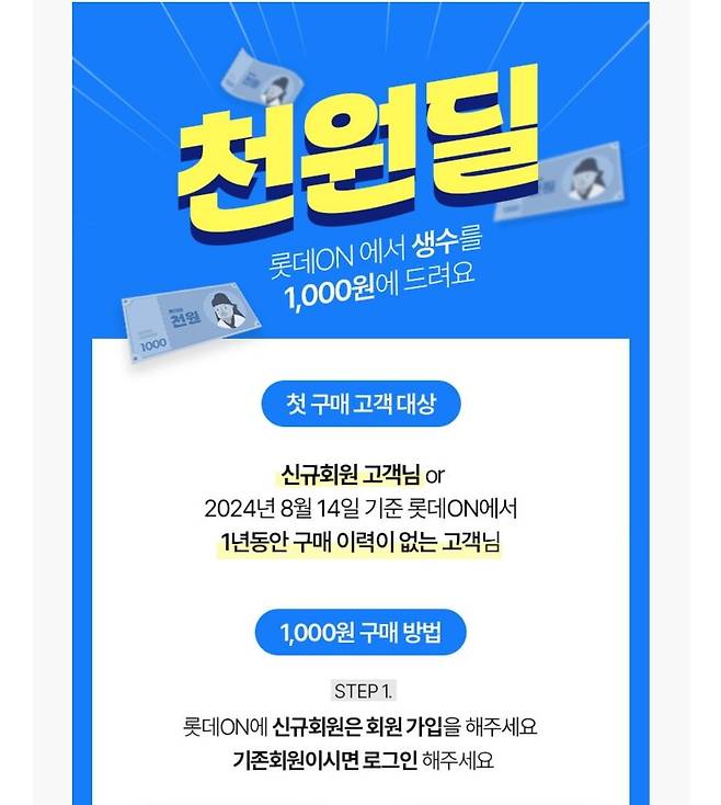 신규 또는 1년동안 미구매자 삼다수2L 6개 1,000원
