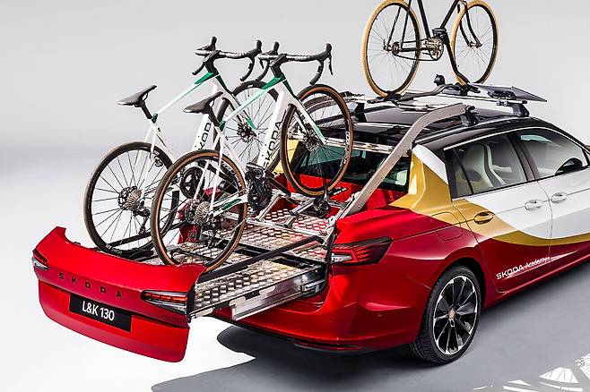 전동 확장형 플랫폼에는 슈코다 정품 액세서리인 자전거 랙 2개가 장착되며, 루프랙에는 제3의 자전거도 탑재 가능하다. 플러그인 하이브리드 시스템은 슈퍼브 콤비 iV와 동일한 1.5 TSI 가솔린 엔진(150마력)과 전기 모터(총 204마력) 조합으로, 25.7kWh 고전압 배터리를 통해 충분한 전기 주행 범위를 확보한다.