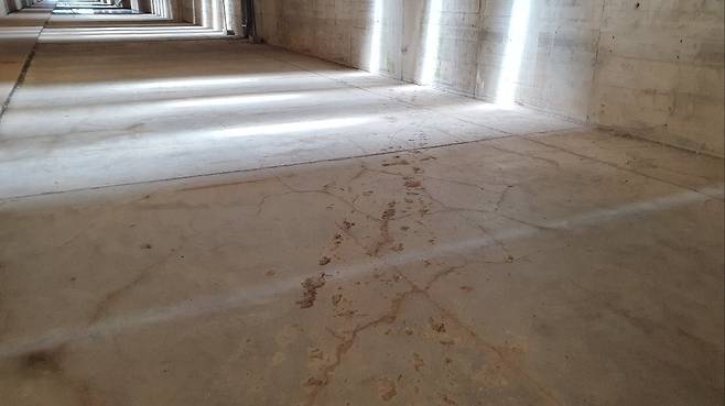 해설가의 설명을 들으며 걷다 보니 재밌는 이야기가 들려왔다. 당시 대한민국을 불법 식민 지배하던 일본의 잠수함도 세 차례나 이곳에 입항했다는 것이다. 일본 잠수함을 타고 온 기술자들은 케로만 기지의 지진에 대비하는 기술을 전수했다고 한다. 사진에서 보이는 바닥에 그어진 선이 당시 일본이 전수한 기술이다. 그들은 직접 잠수함을 통해 필요한 재료를 운송하기도 했다.