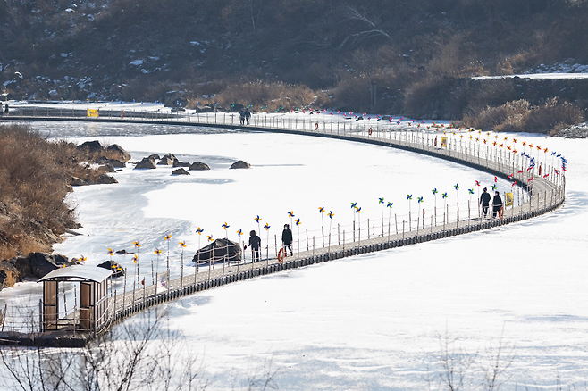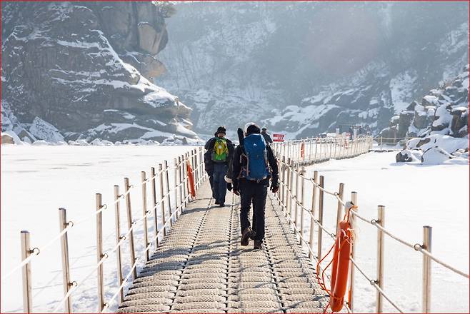 강 위를 걷는 구조 특성상, 체감 온도는 일반 산책로보다 낮습니다. 그래서, 장갑과 모자, 넥워머 같은 방한 용품은 필수입니다. 바닥은 얼음이 얇게 덮이는 구간이 있어 미끄러울 수 있으므로 접지력이 좋은 트레킹화나 겨울용 운동화를 착용하는 것이 안전합니다.