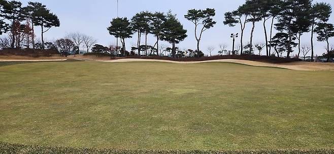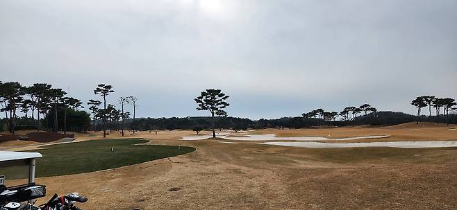당진이라서 골프장이 벌판 위에 있을 줄 알았는데 코스에 다가가보니 약간의 낮은 언덕이 보입니다.