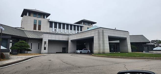 클럽하우스 외부는 약간 차갑게 느껴지는 색상입니다.