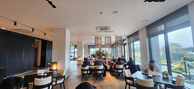 코스 길이는 표시된 길이보다 더 길게 느껴졌습니다. 화이트에서 플레이했는데 느낌은 블루 티 정도? 바람 때문일까 했는데 실제로도 길게 설계되었습니다.